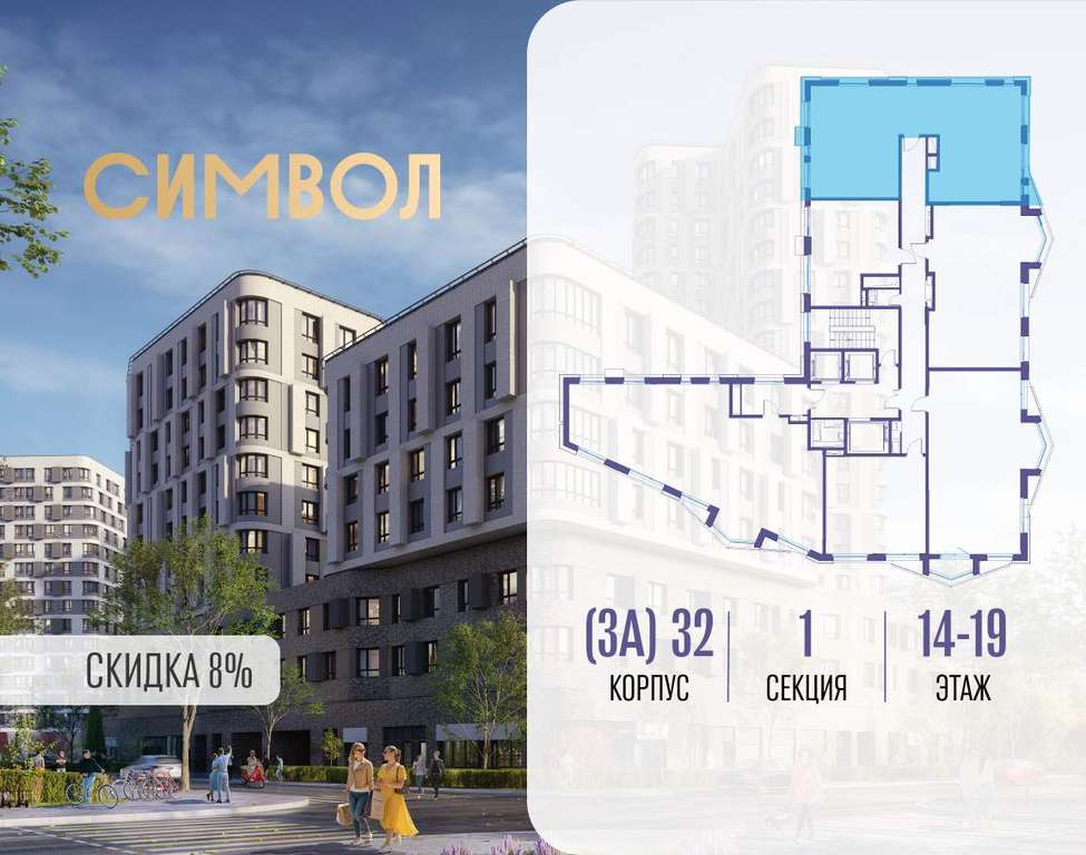 Продается 3-комнатная квартира от застройщика: общая площадь 94.10 м, жилая 44.60 м, кухня 18.70 м, 14-й этаж, жилой квартал «Вдохновение», корпус 32 (секция 1) . Срок сдачи: 4 квартал 2027 года.