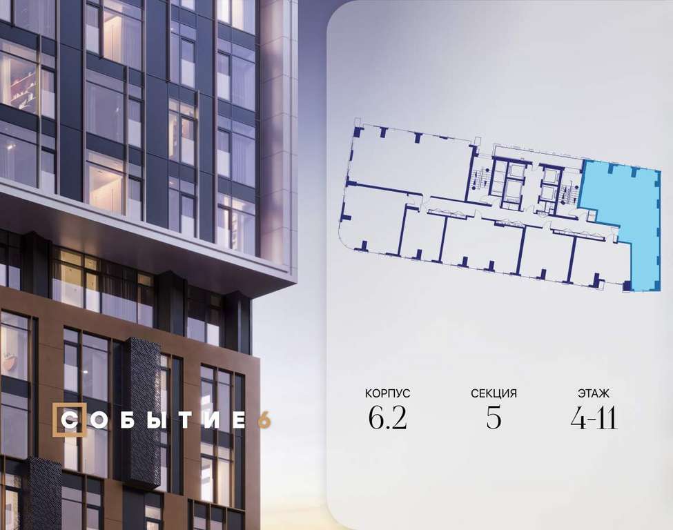 Продаётся 3-комнатная квартира от застройщика: общая площадь 107.50 м, жилая 35.20 м, кухня 30.00 м, 5-й этаж, жилой квартал «Событие-6», корпус 2 (секция 5) Срок сдачи: 4 квартал 2029 года.