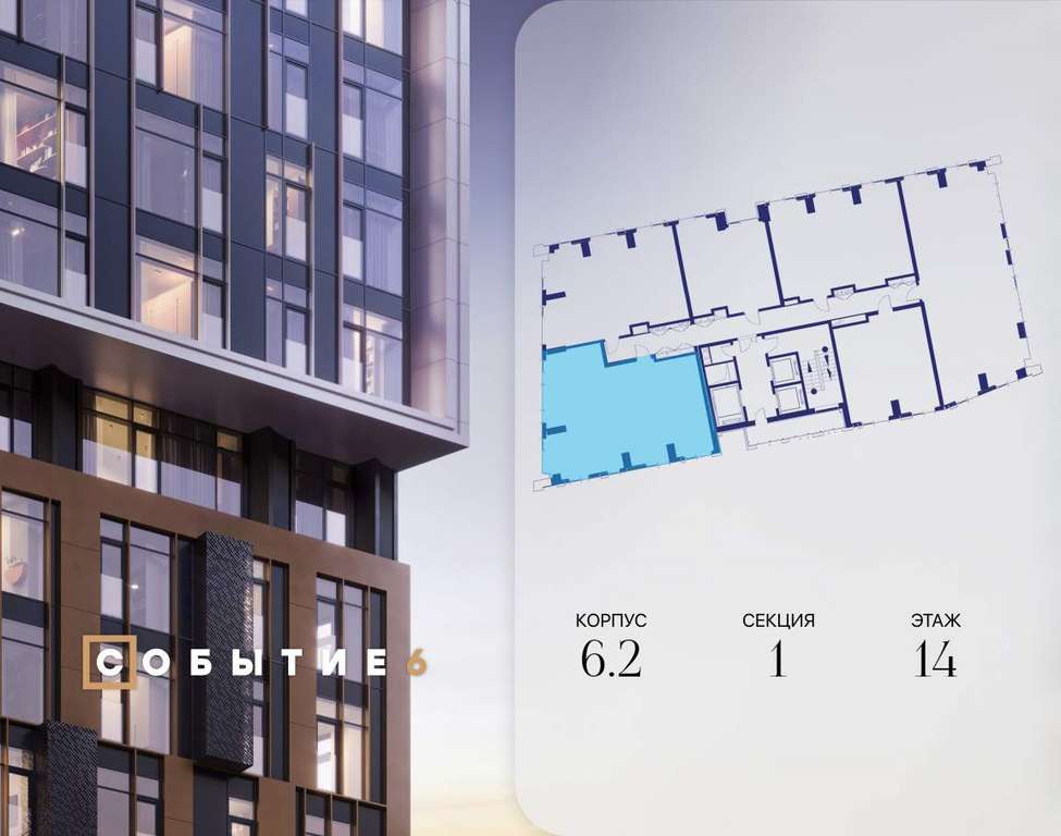 Продаётся 3-комнатная квартира от застройщика: общая площадь 99.70 м, жилая 42.00 м, кухня 23.20 м, 14-й этаж, жилой квартал «Событие-6», корпус 2 (секция 1) Срок сдачи: 4 квартал 2029 года.