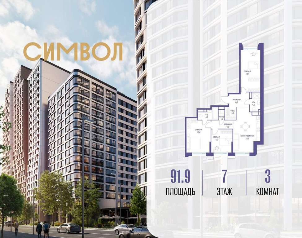 Продается 3-комнатная квартира от застройщика: общая площадь 91.90 м, жилая 46.50 м, кухня 22.50 м, 7-й этаж, жилой квартал «Гордость», корпус 36 (секция 2) . Срок сдачи: 2 квартал 2029 года.