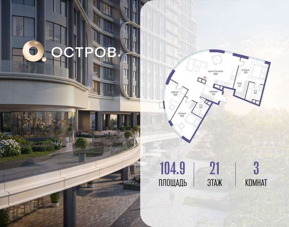 ОСТРОВ от Донстрой - жилой комплекс на западе Москвы, в Мневниковской пойме. Уникальное преимущество комплекса - в том, что он обособлен от города рекой и природным парком (650 га) . Благодаря природному окружению эта территория имеет лучший экологический рейтинг в столице. Кварталы ОСТРОВА объединены ландшафтным дизайном в единое пространство - с набережными и Центральным бульваром. На ОСТРОВЕ любые объекты, необходимые для полноценной жизни и отдыха, находятся на расстоянии 15-минутной прогулки. Торговый центр и супермаркеты, кафе и рестораны, фитнес, салоны красоты, школы и детские сады. А также крупнейший в Москве спортивный кластер.