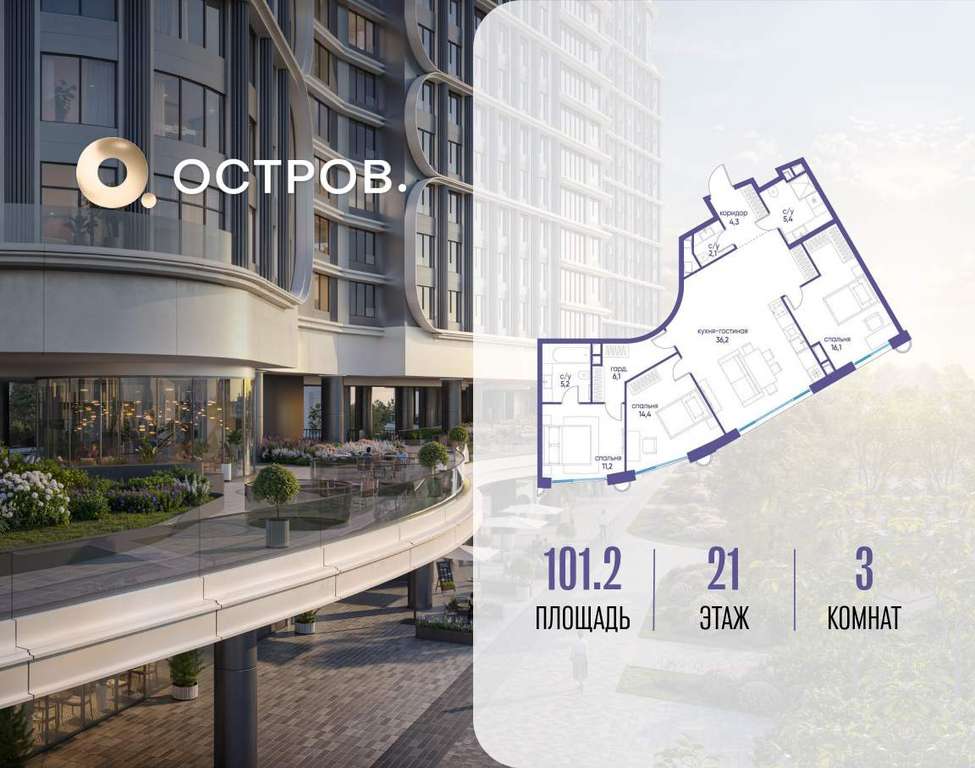 Продаётся 3-комн. квартира от застройщика: общая площадь 101.20 м, жилая 40.30 м, кухня 35.50 м, 21-й этаж, жилой квартал «Остров 7», корпус 7 (секция 2) . Срок сдачи: 3 квартал 2028 года.