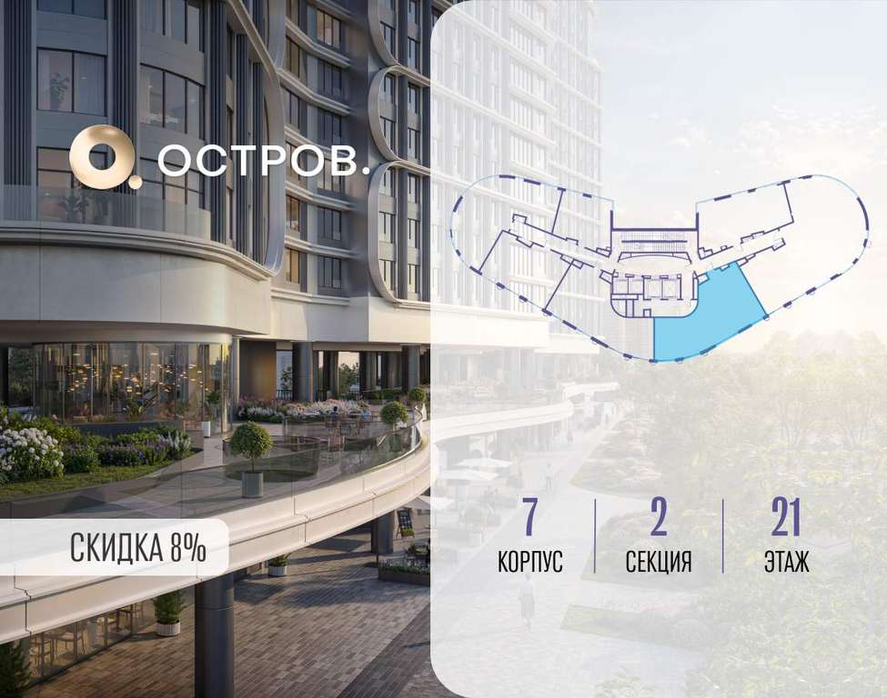ОСТРОВ от Донстрой - жилой комплекс на западе Москвы, в Мневниковской пойме. Уникальное преимущество комплекса - в том, что он обособлен от города рекой и природным парком (650 га) . Благодаря природному окружению эта территория имеет лучший экологический рейтинг в столице. Кварталы ОСТРОВА объединены ландшафтным дизайном в единое пространство - с набережными и Центральным бульваром. На ОСТРОВЕ любые объекты, необходимые для полноценной жизни и отдыха, находятся на расстоянии 15-минутной прогулки. Торговый центр и супермаркеты, кафе и рестораны, фитнес, салоны красоты, школы и детские сады. А также крупнейший в Москве спортивный кластер.