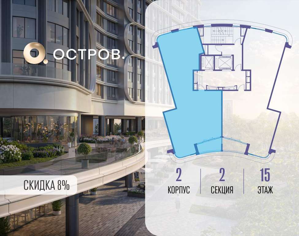 ОСТРОВ от Донстрой - жилой комплекс на западе Москвы, в Мневниковской пойме. Уникальное преимущество комплекса - в том, что он обособлен от города рекой и природным парком (650 га) . Благодаря природному окружению эта территория имеет лучший экологический рейтинг в столице. Кварталы ОСТРОВА объединены ландшафтным дизайном в единое пространство - с набережными и Центральным бульваром. На ОСТРОВЕ любые объекты, необходимые для полноценной жизни и отдыха, находятся на расстоянии 15-минутной прогулки. Торговый центр и супермаркеты, кафе и рестораны, фитнес, салоны красоты, школы и детские сады. А также крупнейший в Москве спортивный кластер.