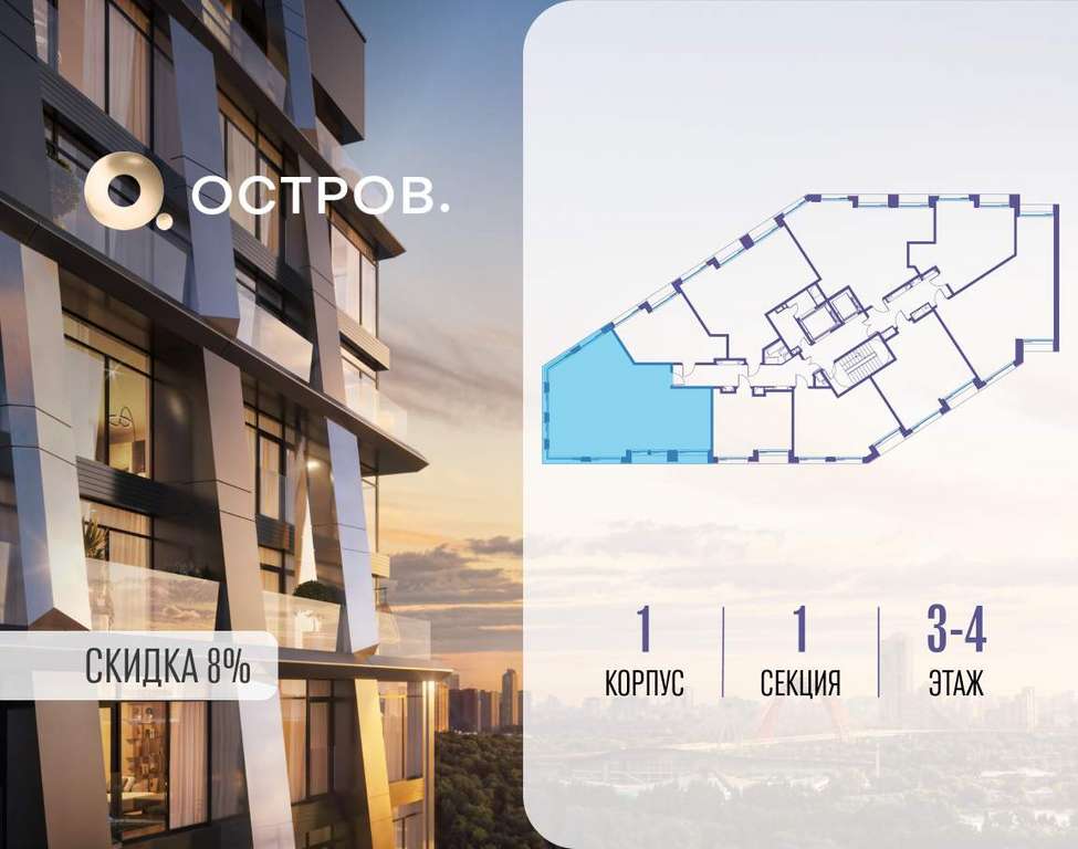 ОСТРОВ от Донстрой - жилой комплекс на западе Москвы, в Мневниковской пойме. Уникальное преимущество комплекса - в том, что он обособлен от города рекой и природным парком (650 га) . Благодаря природному окружению эта территория имеет лучший экологический рейтинг в столице. Кварталы ОСТРОВА объединены ландшафтным дизайном в единое пространство - с набережными и Центральным бульваром. На ОСТРОВЕ любые объекты, необходимые для полноценной жизни и отдыха, находятся на расстоянии 15-минутной прогулки. Торговый центр и супермаркеты, кафе и рестораны, фитнес, салоны красоты, школы и детские сады. А также крупнейший в Москве спортивный кластер.