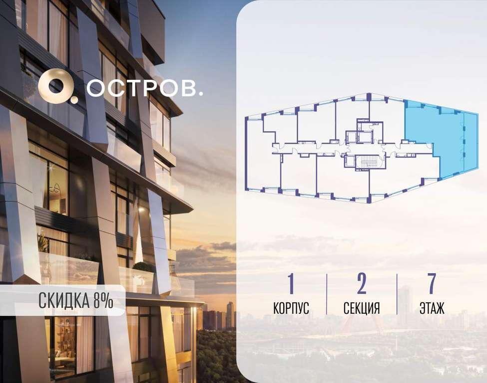ОСТРОВ от Донстрой - жилой комплекс на западе Москвы, в Мневниковской пойме. Уникальное преимущество комплекса - в том, что он обособлен от города рекой и природным парком (650 га) . Благодаря природному окружению эта территория имеет лучший экологический рейтинг в столице. Кварталы ОСТРОВА объединены ландшафтным дизайном в единое пространство - с набережными и Центральным бульваром. На ОСТРОВЕ любые объекты, необходимые для полноценной жизни и отдыха, находятся на расстоянии 15-минутной прогулки. Торговый центр и супермаркеты, кафе и рестораны, фитнес, салоны красоты, школы и детские сады. А также крупнейший в Москве спортивный кластер.