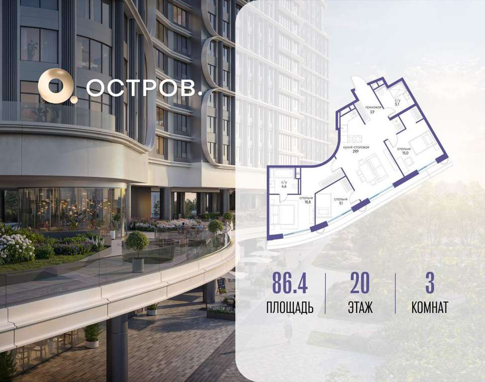 ОСТРОВ от Донстрой - жилой комплекс на западе Москвы, в Мневниковской пойме. Уникальное преимущество комплекса - в том, что он обособлен от города рекой и природным парком (650 га) . Благодаря природному окружению эта территория имеет лучший экологический рейтинг в столице. Кварталы ОСТРОВА объединены ландшафтным дизайном в единое пространство - с набережными и Центральным бульваром. На ОСТРОВЕ любые объекты, необходимые для полноценной жизни и отдыха, находятся на расстоянии 15-минутной прогулки. Торговый центр и супермаркеты, кафе и рестораны, фитнес, салоны красоты, школы и детские сады. А также крупнейший в Москве спортивный кластер.