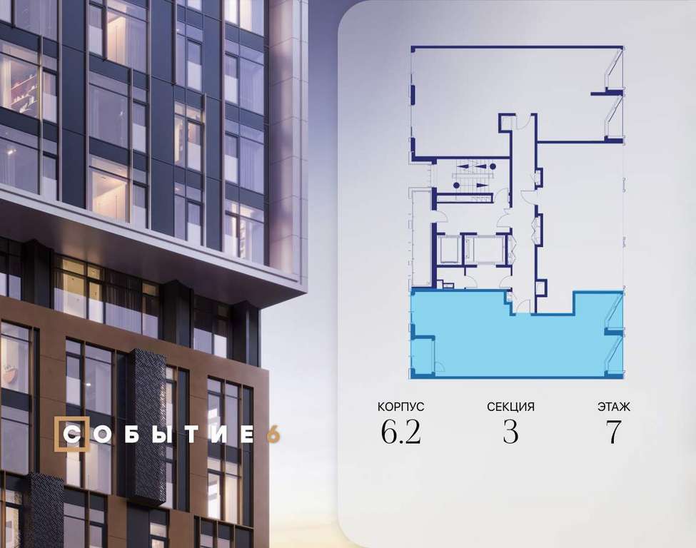 Продаётся 3-комнатная квартира от застройщика: общая площадь 75.40 м, жилая 36.60 м, кухня 20.70 м, 7-й этаж, жилой квартал «Событие-6», корпус 2 (секция 3) Срок сдачи: 4 квартал 2029 года.