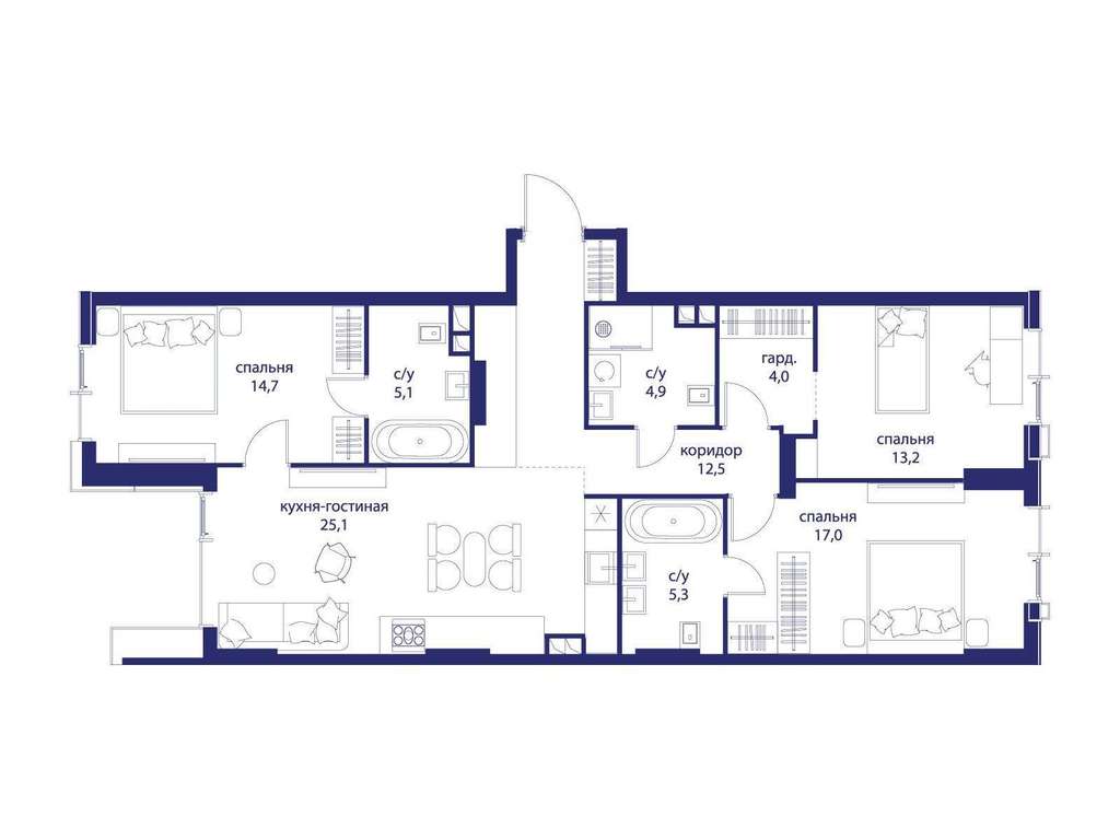 Продаётся 3-комнатная квартира от застройщика: общая площадь 101.80 м, жилая 44.90 м, кухня 25.10 м, 2-й этаж, жилой квартал «Событие-6», корпус 1 (секция 1) Срок сдачи: 4 квартал 2029 года.