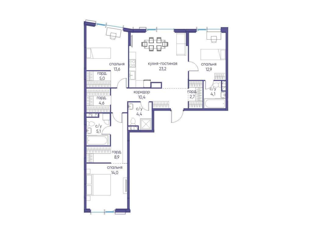 Продаётся 3-комнатная квартира от застройщика: общая площадь 108.90 м, жилая 40.50 м, кухня 23.20 м, 7-й этаж, жилой квартал «Событие-6», корпус 2 (секция 4) Срок сдачи: 4 квартал 2029 года.