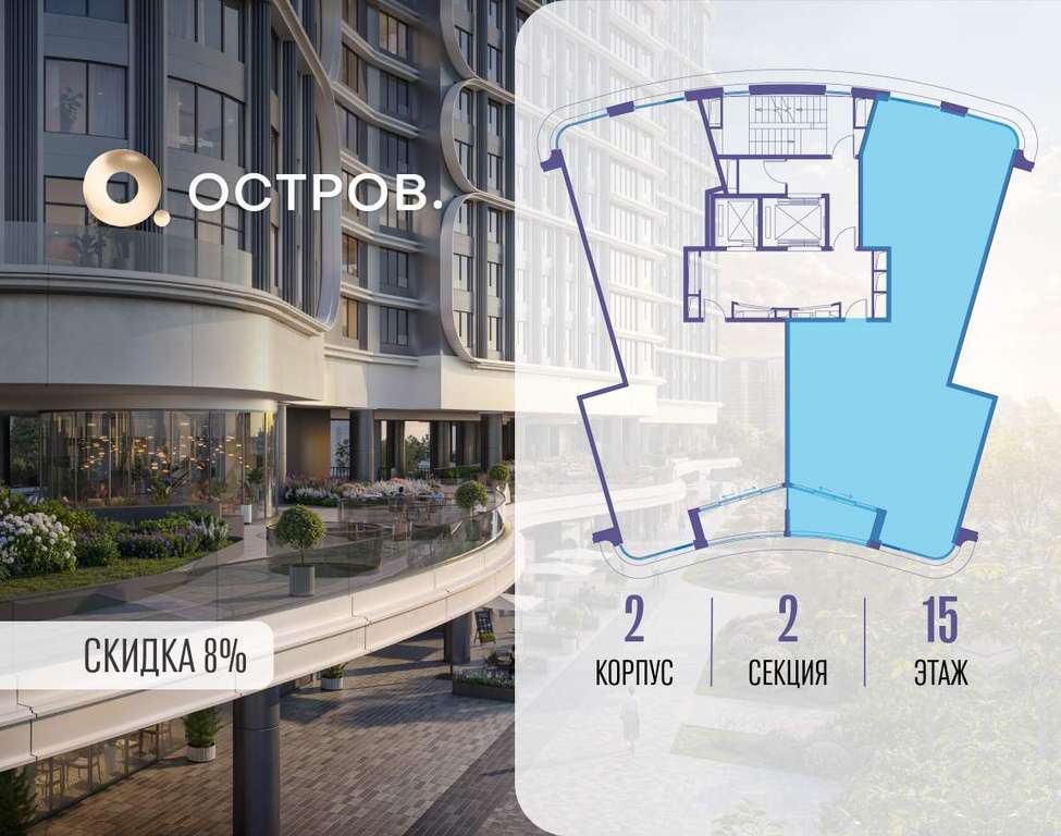 ОСТРОВ от Донстрой - жилой комплекс на западе Москвы, в Мневниковской пойме. Уникальное преимущество комплекса - в том, что он обособлен от города рекой и природным парком (650 га) . Благодаря природному окружению эта территория имеет лучший экологический рейтинг в столице. Кварталы ОСТРОВА объединены ландшафтным дизайном в единое пространство - с набережными и Центральным бульваром. На ОСТРОВЕ любые объекты, необходимые для полноценной жизни и отдыха, находятся на расстоянии 15-минутной прогулки. Торговый центр и супермаркеты, кафе и рестораны, фитнес, салоны красоты, школы и детские сады. А также крупнейший в Москве спортивный кластер.