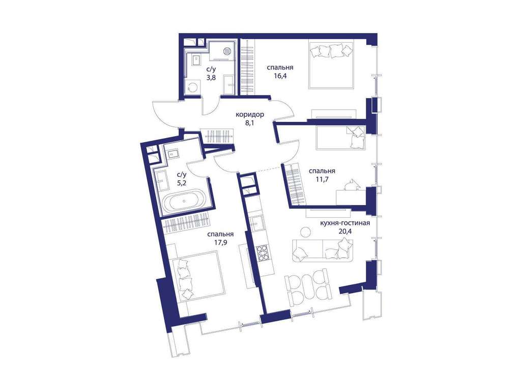 Продаётся 3-комнатная квартира от застройщика: общая площадь 83.50 м, жилая 46.00 м, кухня 20.40 м, 7-й этаж, жилой квартал «Событие-6», корпус 1 (секция 3) Срок сдачи: 4 квартал 2029 года.
