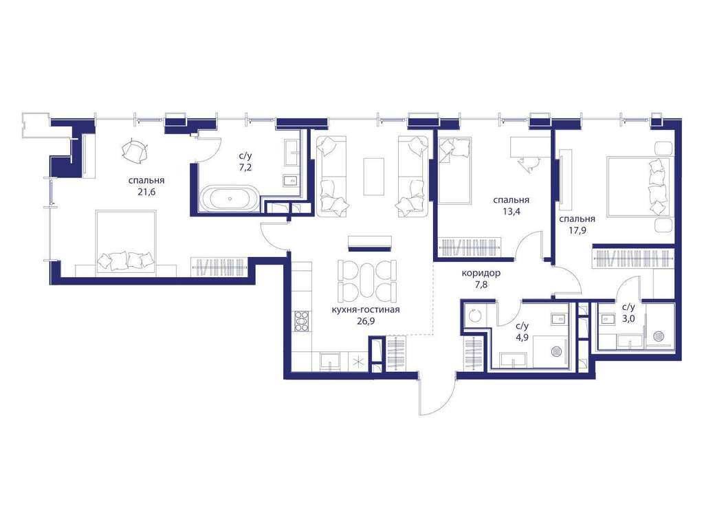 Продаётся 3-комнатная квартира от застройщика: общая площадь 102.70 м, жилая 52.90 м, кухня 26.90 м, 7-й этаж, жилой квартал «Событие-6», корпус 1 (секция 3) Срок сдачи: 4 квартал 2029 года.