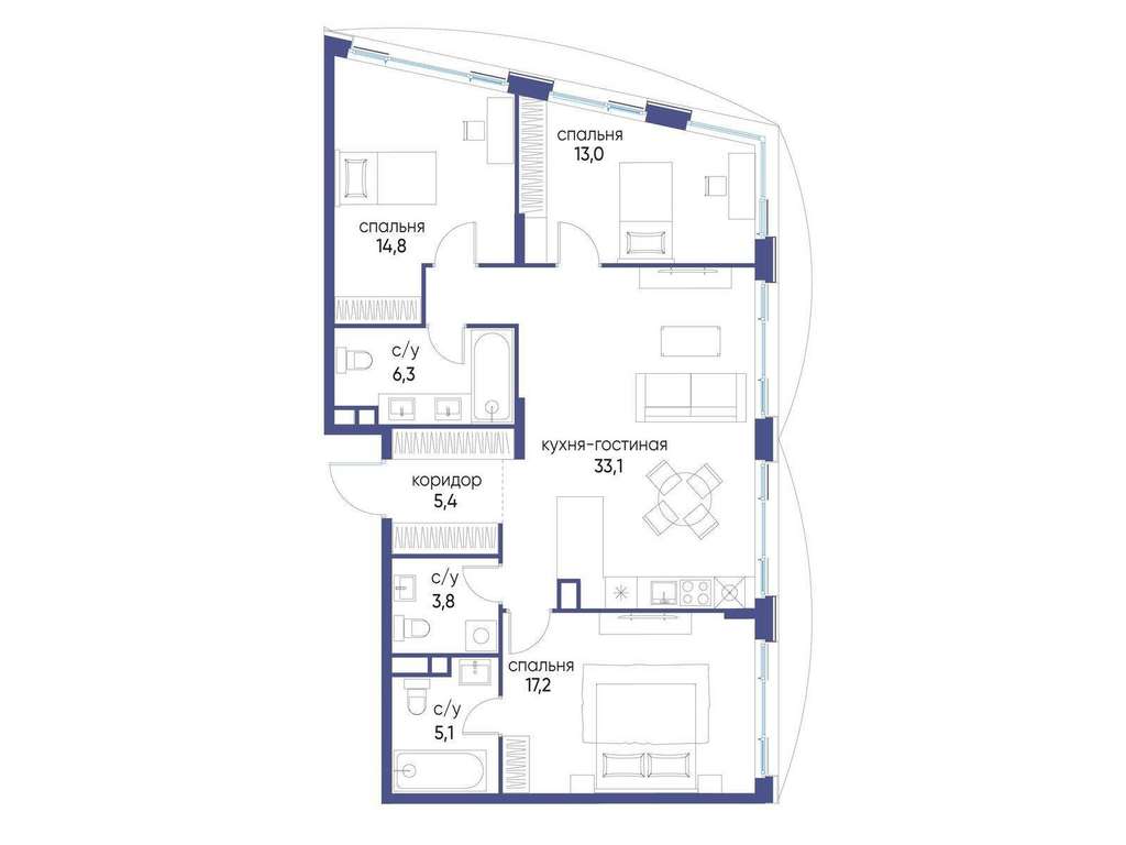 Продаётся 3-комн. квартира от застройщика: общая площадь 98.70 м, жилая м, кухня м, 2-й этаж, жилой квартал «Остров 14», корпус 2 (секция 1) . Срок сдачи: 2 квартал 2029 года.